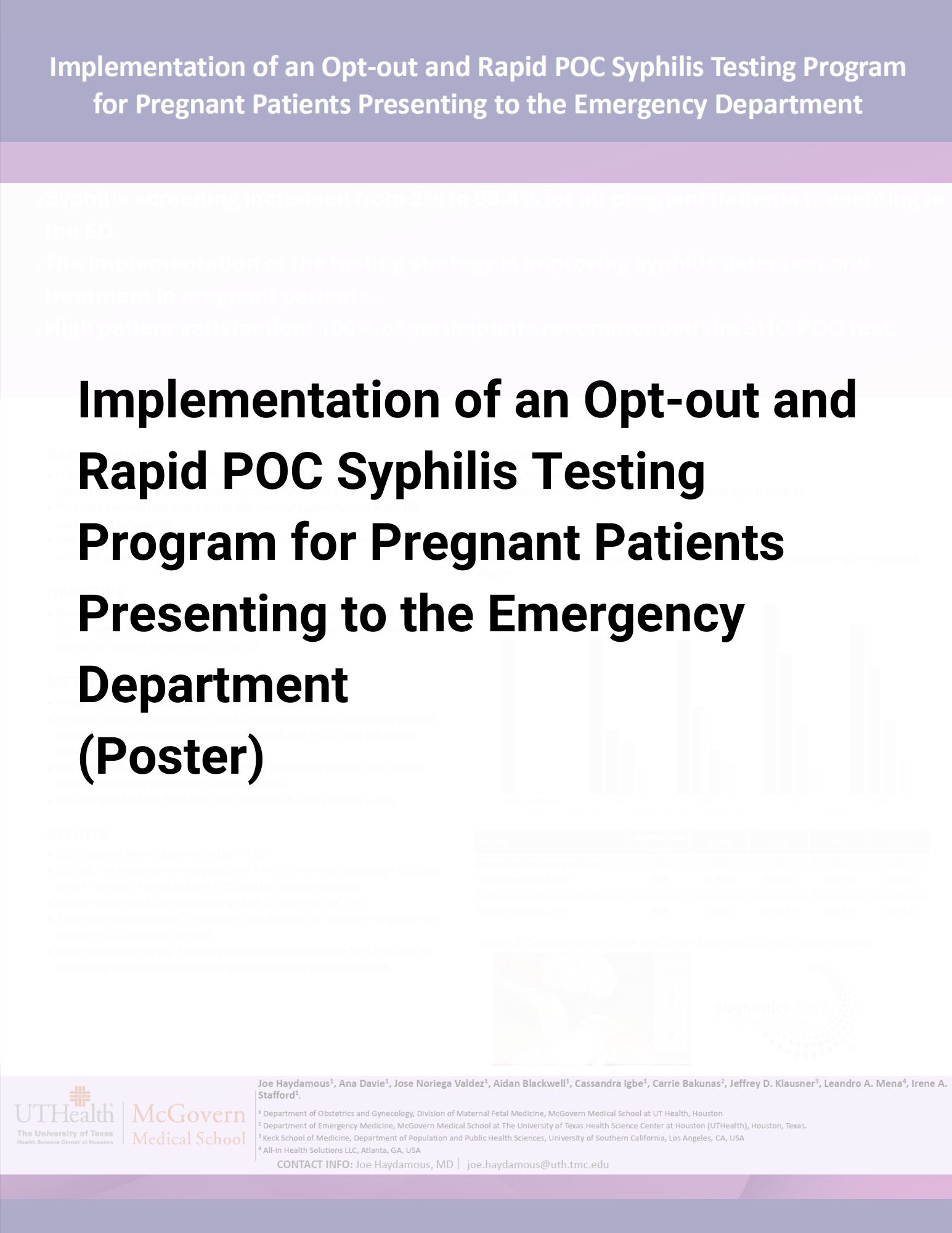 The objective of this pilot is to determine if implementation of a lab-based opt-out and rapid point-of-care (POC) testing strategy will improve diagnosis and treatment of maternal syphilis for patients presenting to the ED.